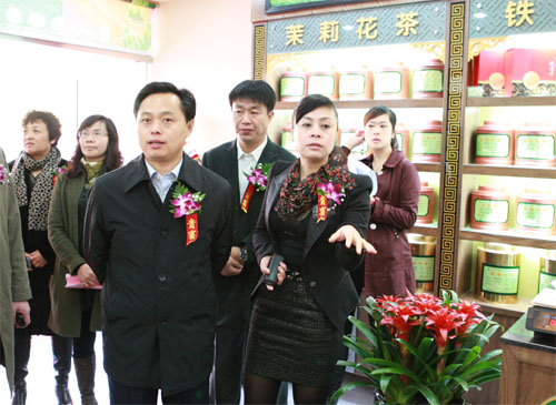西城区副区长郭怀刚祝贺更香茗茶金沟河店开业
