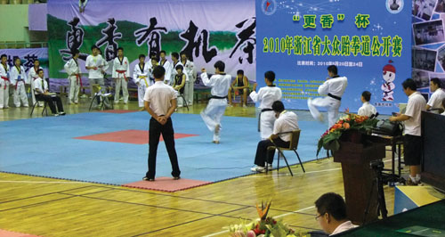 8月22日,由浙江省体育总局主办,金华市体育总会、浙江省跆拳道协会承办、浙江更香有机茶业开发有限公司冠名的“更香杯”第五届浙江省大众跆拳道公开赛在金华市火热开赛。