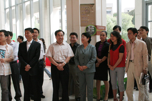 宣武区及北京大学领导在更香公司总经理朱丽俐(右四)的陪同下参观主题公园.