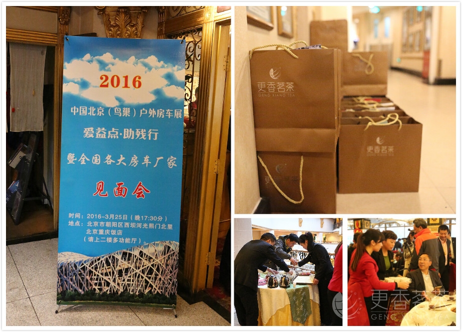 2016年3月25日,中国北京(鸟巢)户外房车展爱益点 助残行 暨全国各大房车厂家见面会在北京重庆饭店召开。更香宁红作为合作伙伴和赞助商参加此次见面,并现场为来宾献茶及表演茶艺。