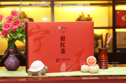 宁红集团是中华老字号及农业产业化国家重点龙头企业,其前身修水茶厂始建于1949年,经过几十年的发展,成为了一家集产、供、销、研为一体的综合性集团公司。宁红柑红茶作为宁红集团有限公司推出的创新型产品,在制作工艺中采用新会陈皮与宁红红茶相结合,借助新会陈皮温能养脾、辛能醒脾、苦能健脾、药食同源、食养俱佳等功效,配以红茶香味持久、汤底洪亮、滋味浓醇等特点,让柑皮与红茶相互吸收彼此精华,你中有我,我中有你,从而使宁红柑红茶口感醇和甘甜,汤色金黄透亮,越陈越香,风味独特。