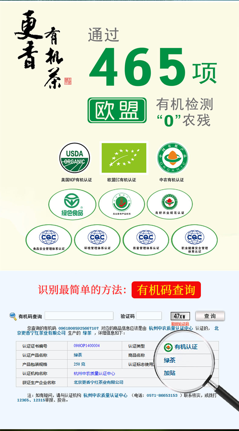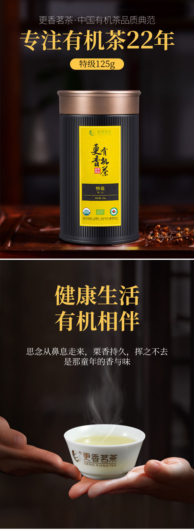 更香茗茶有机绿茶特级125g 绿茶有机口粮茶送礼 经典黑仁品