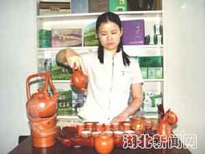 八仙观茶场职工演示武当太极养生茶的沏茶技术