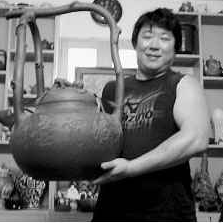 刘先生收藏的一个一次可以供几十人喝茶的大茶壶。