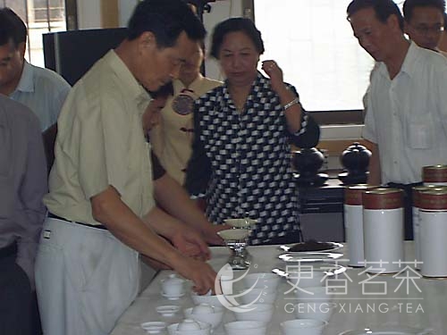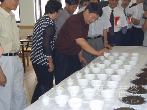 为期3天的首届中国岭头单丛茶文化节今天在广东省饶平县落幕。素有“中国岭头单丛茶之乡”美誉的饶平县通过赛茶,赛出了“茶王”。 饶平县依山傍海,属亚热带海洋性季风气候,其北部山区特别是西北部山区,具备发展优质茶叶生产得天独厚的地理气候条件。岭头单丛茶属乌龙茶类,于1961年选育而成,并于2002年形成《岭头单丛茶综合标准》,被国家农业部审定为国家茶树良种。该县15个镇种植岭头单丛茶,总面积逾5万亩。种植、生产岭头单丛茶成为饶平山区人民脱贫致富的主要途径之一。 此次首届中国岭头单丛茶文化节期间,一个最引人注目的内容就是“茶王”赛(见图)。由7位茶叶专家组成的评委会,对该县各地选送的35个茶样,分外形和内质进行感官和密码审评,其中外形和内质分5个因子进行评分,包括香气、汤色、滋味、叶底等。经过专家们近1天时间的认真审评,饶平县元峰茶业有限公司许念丰选送的“岭头”牌岭头单丛茶以99·5分的高分,摘取了首届中国岭头单丛茶“茶王”桂冠。“茶王”赛还评出了一等奖3名,二等奖10名以及创新工艺奖1名。