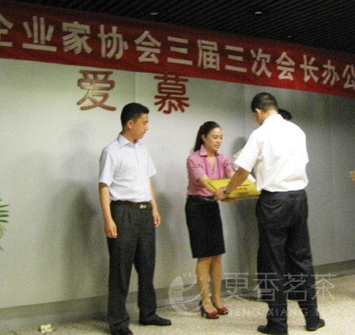 团市委副书记、北青企协会长于庆丰向更香公司总经理朱丽俐授牌