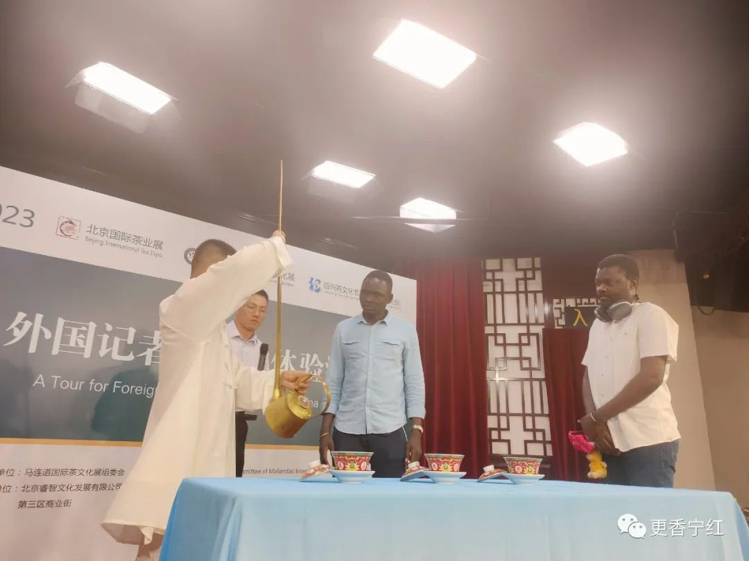 2023年6月5日下午,《外国记者茶文化体验活动》在北京西城举行,由马连道国际茶文化展组委会主办,北京睿智文化发展有限公司、第三区商业街支持。北京更香宁红茶业有限公司应邀参加,并在活动环节中展示茶艺表演“长嘴壶”。