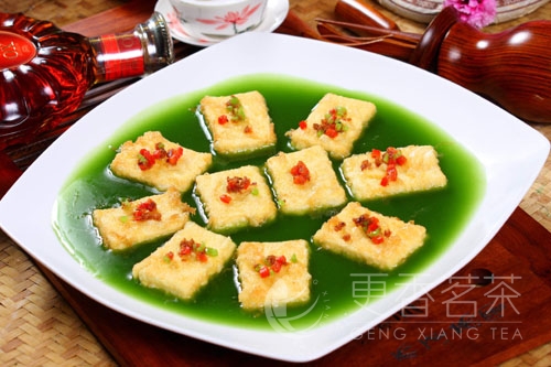 Characteristic: The bean curd tastes smooth and tender with soft tea fragrance and looks beautiful.