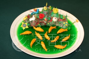 特点:尝之既有南瓜的香味,又有茭白的清香。形似小鱼、造型逼真、质地软糯。