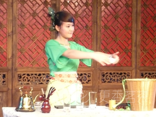 (有机茶王)茶艺是更香表演队编创的有机绿茶茶艺表演,表演者更香茶艺表演队副领队刘倩.