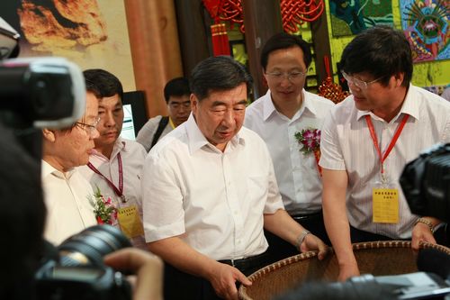 国家副总理回良玉在浙江厅西湖龙井现场炒制区参观