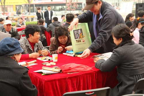 最后由来自协会、茶艺传播中心、茶企业的领导向学生、社区居民、外国友人等代表赠茶,同时茶使者向周边观众和市民派发茶叶。台上台下茶香四溢、茶情浓郁,更香公司也推出春茶品鲜季活动,进行多款新茶的现场推介;北京博人堂首席专家顾问于静涛讲解饮茶养生常识;更香茗膳府总经理梁志兵介绍“以茶入餐”的养生膳法,东方国艺登台演绎古典优雅的茶艺表演《红袖添香》,加上现场赠饮、饮茶手册发放等环节,吸引了众多路人参与,整个茶行业都倾力打造和推升着“全民饮茶日”的知名度,以期更多的人能“知茶、爱茶、饮茶”。