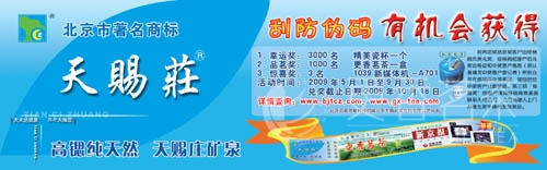 本次活动从5月1日开始,历时5个月,只需您在购买天赐庄桶装水后,轻轻刮开桶盖上圆形防伪合格证上的涂层,您就有机会获得天赐庄公司设定的幸运奖,品茗奖,惊喜奖三个级别的奖项。除“谢谢您”以外,即可获得精美瓷杯一个或更香茗茶一盒,如您足够幸运的话,将能得到价值五千元的1039新媒体机一台,这是一台您可以在车上无线上网、为您提供实时路况信息和导航等多种享受的多媒体机。本次活动天赐庄矿泉和1039多媒体机,更香有机茶强强联手,通力合作。同时得到《新京报》、《中国食品质量报》、饮水在线、北京水网、北京矿泉水网等多家媒体和单位的支持。