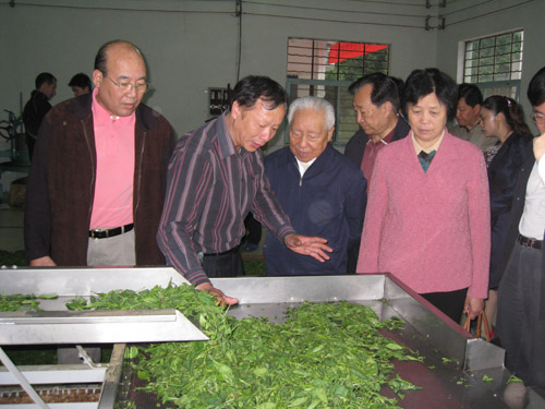 领导一行参观了正紧锣密鼓生产中的春茶加工车间,更香公司总经理朱丽俐介绍了茶叶种植、生产等工序概况以及市场销售等状况。