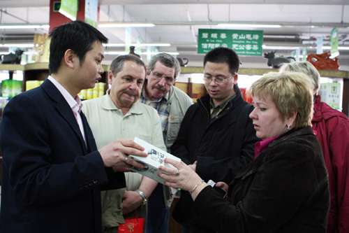 4月27日上午,在宣武区商务局局长郭新的陪同下,来自俄罗斯等国的友人来到更香总部大茶庄参观交流,对更香公司现代的企业与产品形象翘首称赞。