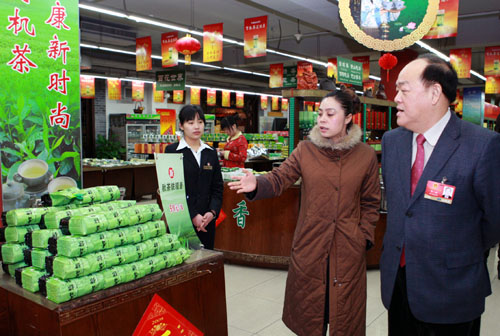 3月5日,全国人民代表大会常务委员会澳门代表团贺一诚委员参观更香总部大茶庄。在浙江省金华市副市长蔡健的陪同下,贺一诚委员对全国最大的茶庄表现出浓浓的兴趣。