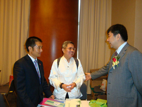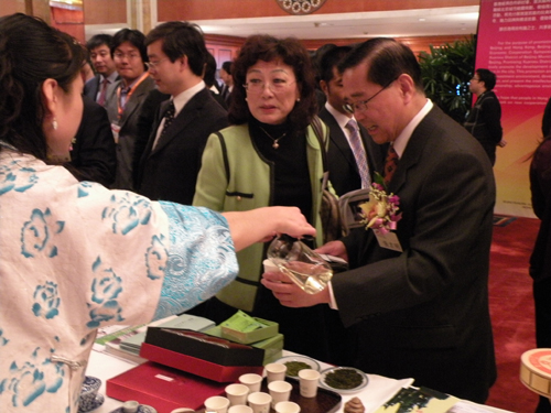 在特色企业展示区,中央人民政府驻港联络办公室秘书长赵广廷、全国政协委员,香港立法会议员,香港协进联盟主席刘汉铨,全国政协委员,全国工商联副主席武淑清等领导在宣武区区长王刚的陪同下,饶有兴趣地品尝了更香有机绿茶,并仔细了解更香有机茶的特点与制作过程。公司的快速发展以及有机茶所带来的健康生活理念,赢得了一致称赞。
