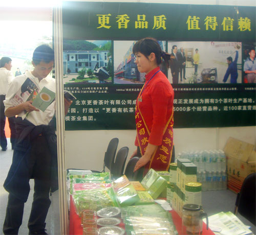 更香公司以有机茶为主导产品,各色各样的茶叶包装和品种吸引了顾客的眼球。