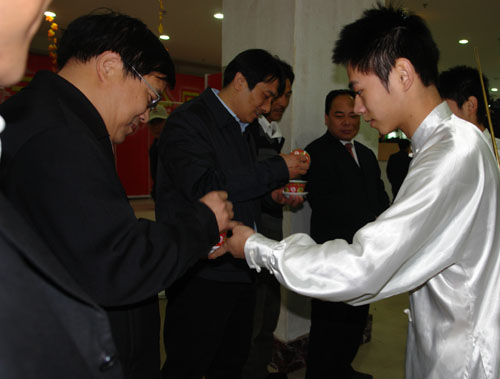 更香茶艺队双胞胎潇恒、程潇俊为北京市商务局现代流通发展处处长雷堃敬茶