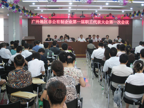 7月25日,宣武区广外地区非公有制企业第一次职工代表大会于广外社区会议厅举行。广外街道工会主席苏玉英、副主席王桂信、广外街道工会委员会委员陈亚玲以及众多非工企业职工代表参加了这次会议。