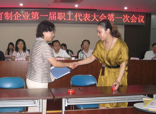 与会代表听取了广外街道工会联合会工作报告,并通过《广外地区非公有制企业职代会实施细则》等有关决议,更香公司总经理朱丽俐作为广外地区与非工企业代表,同大会执行主席苏玉英现场签订了《区域性集体合同》、《工资集体协商协议》和《女职工专项保护协议》三个文本。更香工会主席王焕惠在会上向广外地区非工企业职工同志宣读倡议书。