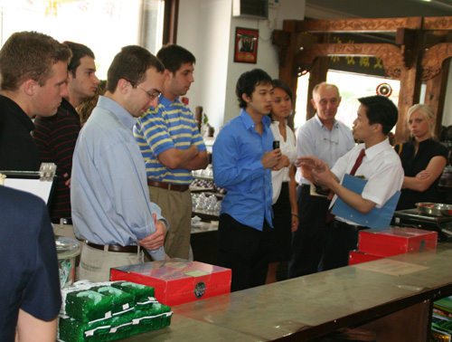 这是该学院代表团第二次来访更香公司。2007年6月在该院院长Richard Watson教授带领下的15人代表团来到中国考察,当时选取了一些在中国市场本土化经营发展较好或迅速崛起的企业作为访问对象,包括联想、中国大众、百度、更香公司,最终,更香公司因其奇迹般的茶产业发展历程而被选作为研究生课程案例分析的对象。