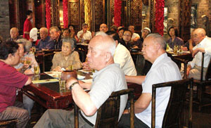 会议过程中,公司为每位老干部沏好一杯“俞氏养生茶”,在大家品茶的同时,由公司董事长俞学文为大家详细介绍“俞氏养生茶”的研制过程、主要配方及饮用方法等等,大家对此茶有任何不清楚的方面也都可以向俞总提问