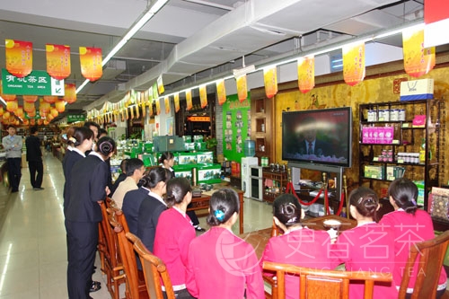 10月15日,更香公司组织员工学习和关注十七大会议的召开,并学习会议精神。图为董事长俞学文(前排右二)带领管理人员观看会议的实况直播。