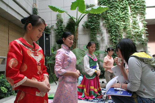 小小茶馆作为现场一个休息区域,处处体现着温馨轻松活泼,简约而不简陋。三名小茶人精彩的茶艺表演使得无数大学生驻足观看,并且引得大学生现场学习茶艺,热闹非凡。小茶人不仅带来了茶艺表演,并且展示了各自的绝活,有英语解说,踢踏舞等,他们的才华横溢,赢来大家的阵阵掌声。
