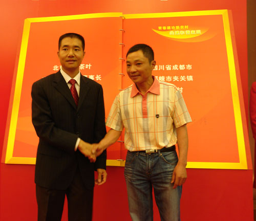 5月10日上午,“青春建功新农村•共建和谐家园”活动在北京人民大会堂启动,共青团组织推出了东西互助、青年能人帮扶、企事业单位结对帮扶、名誉村主任帮扶、新型经济合作组织帮扶等五种方式,动员社会力量携手共建和谐家园,培育新农村建设的青年主力。更香公司董事长俞学文推选为四川省邛崃市夹关镇鱼坝村名誉村主任,全国人大常委会副委员长热地分别向俞学文、潘长江等四位名誉村主任颁发了荣誉证书。团中央书记处第一书记胡春华、团中央书记处书记王晓出席了此次活动。