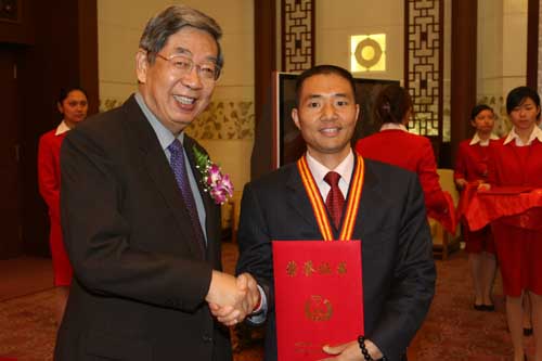 12月28日,由团中央、水利部、农业部、财政部、国家林业局和全国青联共同组织的“第十一届中国杰出青年农民”颁奖典礼在人民大会堂举行。浙江省武义县青年农民、北京更香茶叶有限责任公司董事长俞学文因延伸有机茶绿色产业链,连通城乡市场,带领茶农走向致富大道而获此殊荣并受到表彰。
