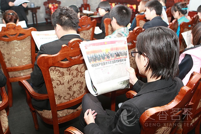 党的十八大已胜利闭幕,并选举产生了新一届中共中央领导集体。为了更好地学习十八大精神、学习习近平总书记在常委见面会上的讲话精神,更香茶叶公司党支部、团总支组织全体党员、入党积极分子、广大团员于11月16日下午在更香茗膳府二楼百茶厅集体学习。