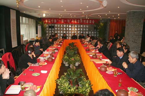 12月21日上午9:00,北京市私个协“一报一刊”与私企内刊座谈会在更香茶楼百茶厅召开。北京市私营个体经济协会会长金鑫、市18个区县的各位会长和秘书长以及全市各大私企内刊的主编们会聚一堂,畅谈协会和企业的宣传工作。