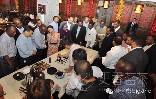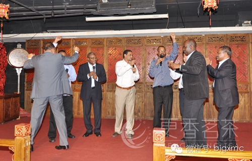 今天下午,第三期苏丹全国大(苏丹全国大会党简称全国大)高级干部研修班来到更香茶楼,体验中国茶文化,品饮更香有机茶,观看京剧、书法艺术以及更香茶艺队的精彩茶艺表演。