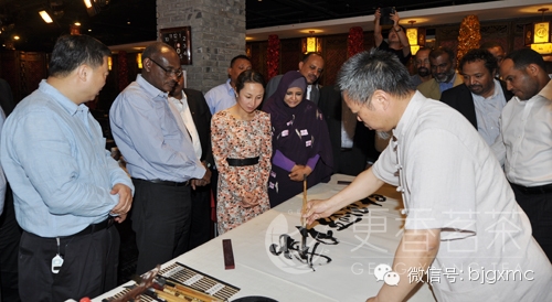 这次来访的苏丹“全国大”高级研修班一共25人,中联部相关领导、苏丹驻华大使、苏丹驻华使馆副馆长等出席。更香茶艺队表演双龙戏茶。