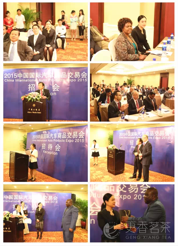 5月19日下午,2015年中国国际汽车商品交易会招待会在中国大饭店召开。更香茗茶和宁红集团是本次招待会的赞助单位,更香公司总经理朱丽俐作为受邀嘉宾参加本次会议。