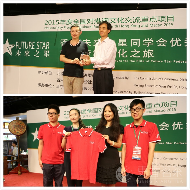 2015年6月17日下午,来自“未来之星同学会”的百名优秀的香港大学生来到北京马连道更香茶楼做客。作为“中国传统文化之旅”的第一站,这些远道而来的香港大学生与中国博大而精深的茶文化进行零距离接触,充分领略了中国博大精深的茶文化。
