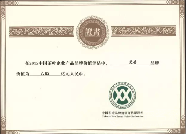 日前,浙江大学CARD中国农业品牌研究中心中国茶叶品牌价值评估课题组公布了2015中国茶叶区域公用品牌价值评估结果。在2015年中国茶叶企业产品品牌价值排行榜上,“更香”品牌价值7.82亿元,位居排行榜第四名。此前两年,“更香”品牌价值评估分别是2013年7.03亿元,2014年7.57亿元,由此可见,“更香”品牌价值平稳增长。