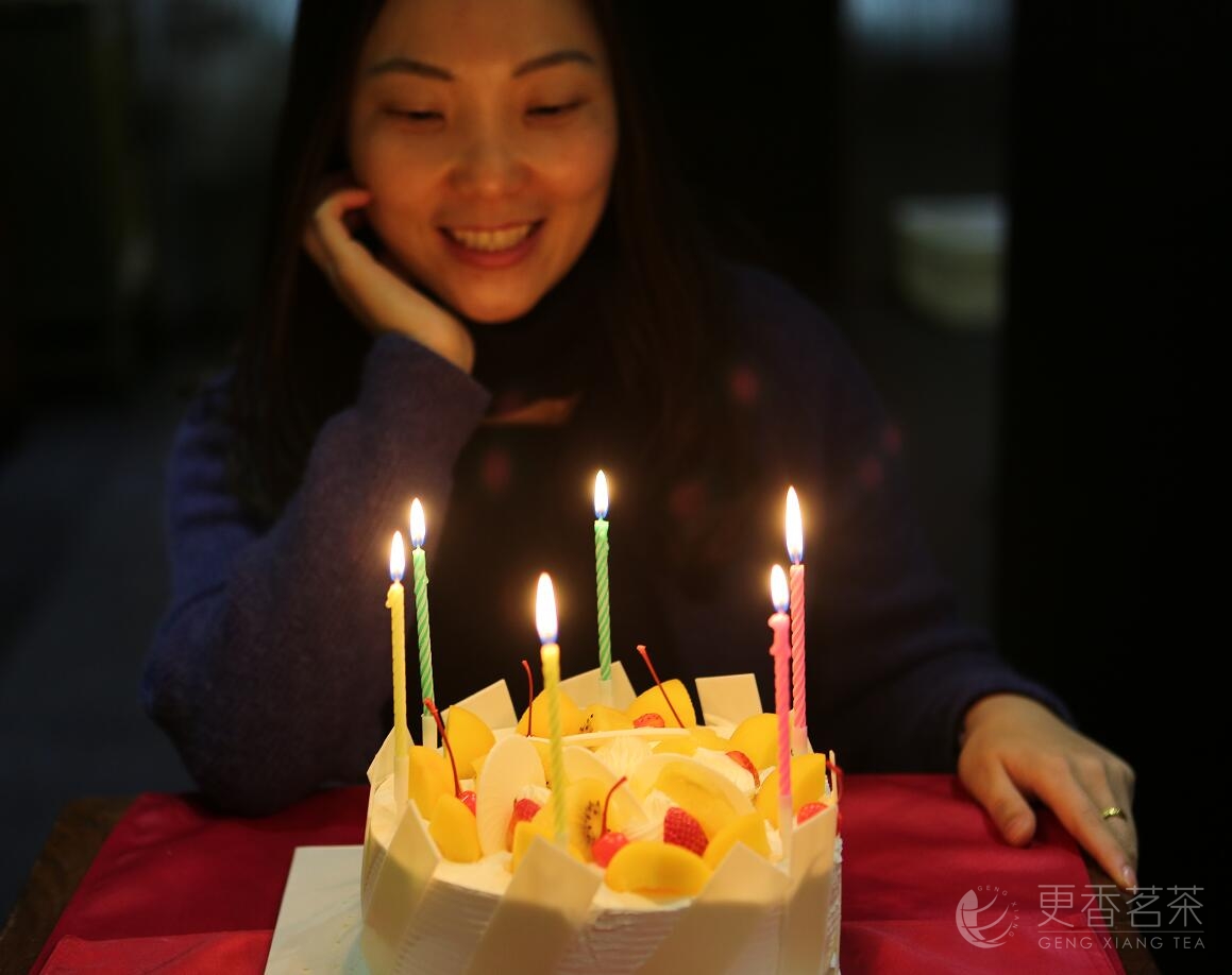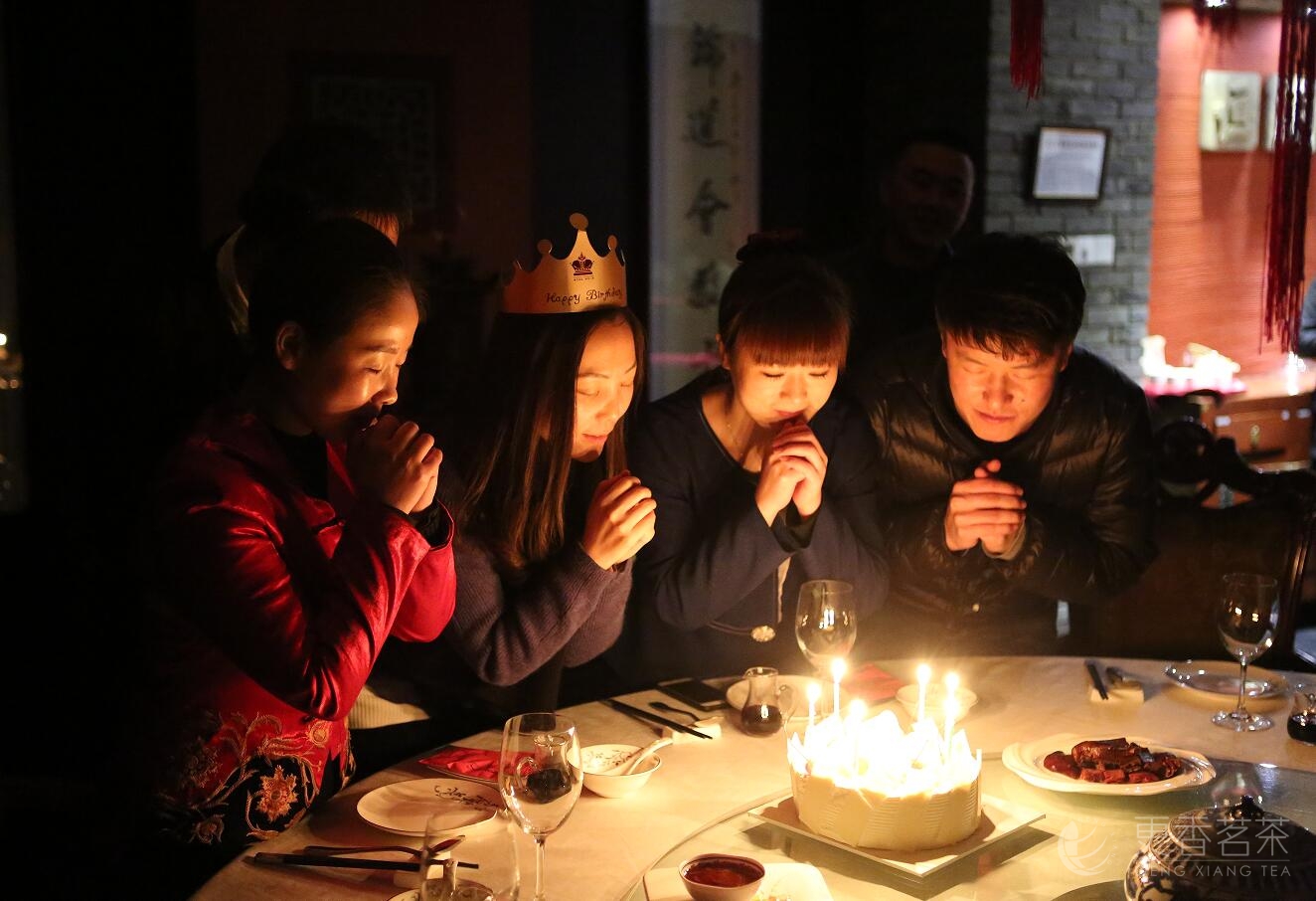 在温馨的祝福中吃着蛋糕,