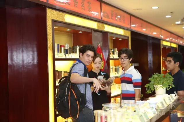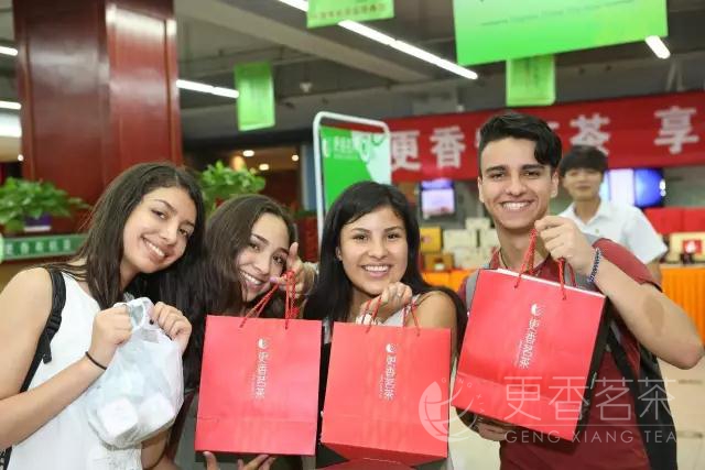 当日,来自墨西哥农业大学的百余名大学生在郑老师的陪同下光临北京更香宁红大茶庄参观、品茗。茶艺师为客人表演了长嘴壶茶艺“双龙戏茶”,并请外国友人品尝更香有机茶、宁红红茶。现场茶艺师结合更香有机茶、宁红茶的历史以及企业文化,为客人介绍了中国各大名茶、茶与季节的关系、茶与养生、茶具等茶文化知识,使墨西哥大学生与中国茶有了一次亲密接触和深入体验。
