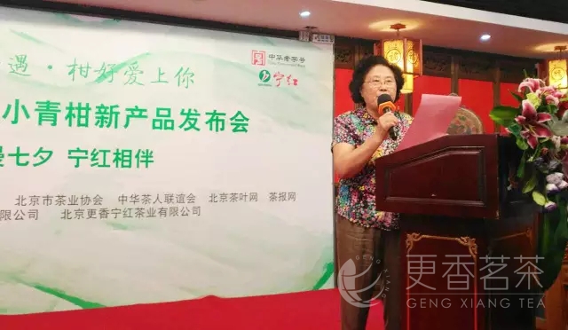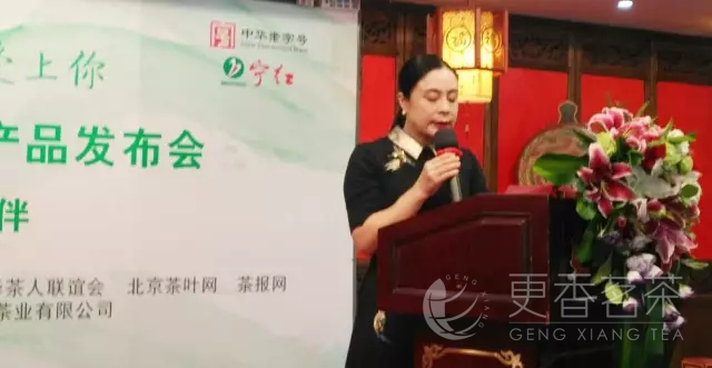 其次,北京更香宁红茶业有限公司的董事长朱丽俐致欢迎词。她表示,经过二十年的沉淀,如今更香有机茶和百年宁红茶的结合,必将会结出累累硕果,宁红小青柑的上市,必将为茶行业带去一份新的活力。用三到五年的时间,响应国家政策,抓住机遇,实现宁红集团的挂牌上市,最终让更香茶更红,宁红茶更香。