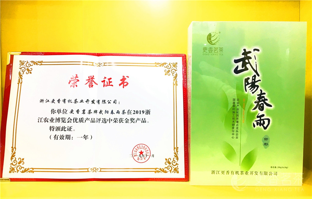 天行健,君子以自强不息。近年来,浙江更香茶业公司积极参加全国各地组织的茶叶博览会。如浙江省绿茶博览会,省农业博览会等,积极推介品牌形象。在10月下旬举行的第十五届中国茶业经济年会上,更香茗茶荣获2019年中国茶业百强企业,“更香茗茶”品牌价值达10.04亿元,突破10亿元大关。