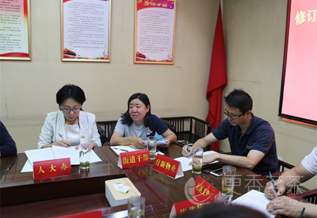 在选区更香宁红茶业公司会议室,市、区人大代表与街道干部、小区物业代表、环卫代表、社区工作者,居民代表30余人围绕修订《条例》宣讲及征集意见、建议开展座谈。