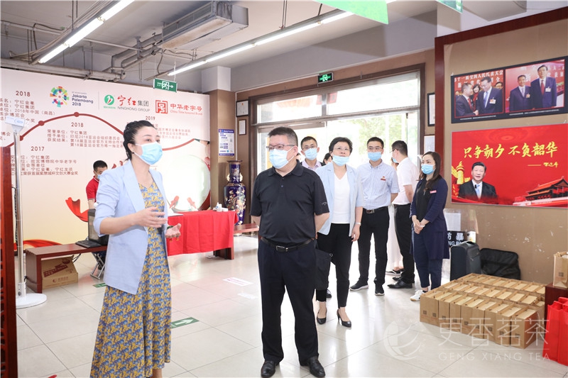 参观过程中朱丽俐对当前公司茶叶生产、销售情况,以及更香有机茶、更香花茶、宁红茶等产品种类和近年来新开发的几款备受市场青睐的新产品,如小青柑、亚运国礼茶、世园会专属茶礼作了重点介绍。她说,尽管今年受疫情影响,生产销售受到一定影响,但我们不等不靠,发动全员销售,在稳固传统营销模式的同时,积极推行现代营销新模式,建立了全员微信社区营销体系,在抖音直播、腾讯直播、京东直播、天猫直播带货方面率先进行了尝试,今年4月底我们首次举办了“美丽乡村我代言”明星助农带货活动,并取得圆满成功。