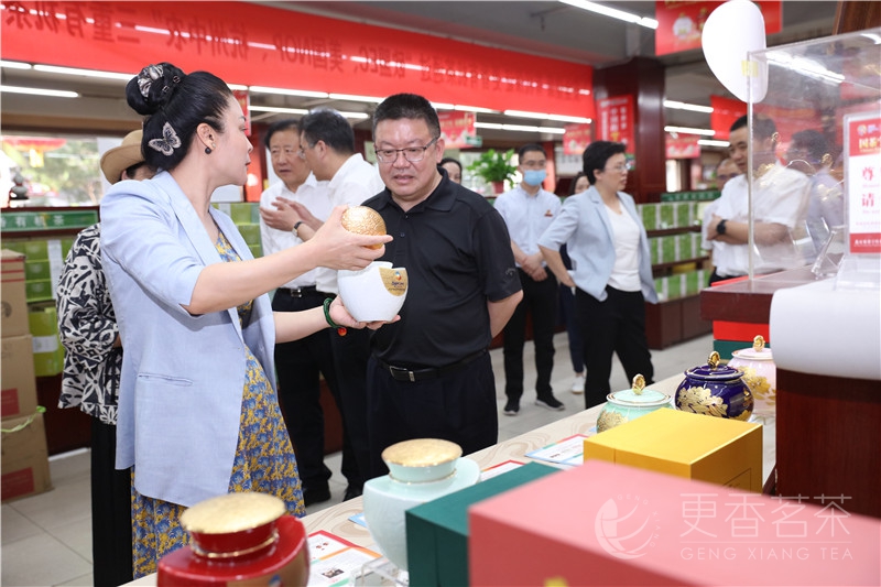 王通林厅长一行参观了北京更香宁红大卖场,详细了解了更香有机茶20年间发展历程及2010年整合重组江西省宁红集团以来取得的一些成就。朱丽俐董事长对王通林厅长一行表示热烈欢迎,并对省农业农村厅长期以来对更香茶业的关心支持表示衷心感谢。