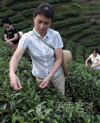 6月7日,广西贺州市昭平县一家拥有6000亩茶叶的龙头企业员工在摘采夏茶。昭平县地处广西东部,其自然生态环境适宜茶叶生产,该县共有茶园面积5万多亩,年产干茶2500吨以上,亩产值达3000多元。全县60多家茶叶加工厂生产的名优茶叶外销良好,农民人均茶叶单项纯收入达1200元。昭平县规模种植茶叶、产业化经营已成为该县农民增收、发展农村经济的一大产业。