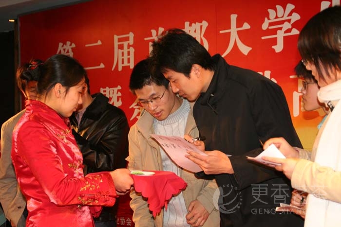 2006年12月10日,第二届首都大学生茶文化交流会暨茶文化进高校启动仪式在更香茶楼隆重举行。中国茶叶流通协会常务副会长王庆、北京市工商业联合会副会长马兰霞、共青团北京市委员会企业工作部副部长张彤以及宣武区、东城区有关领导和茶叶界专家出席了此次交流会。