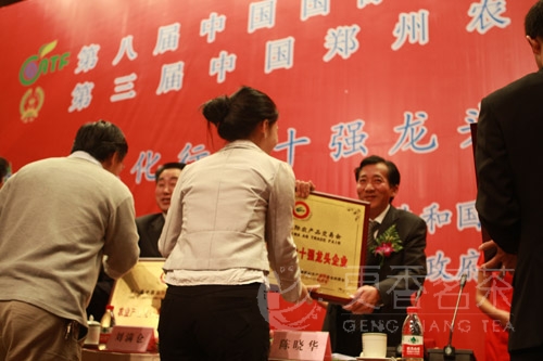 农业部副部长陈晓华为更香授予“农业产业化行业十强企业”荣誉