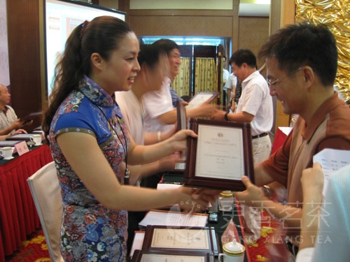 常务副会长、更香公司总经理朱丽俐为会员颁牌