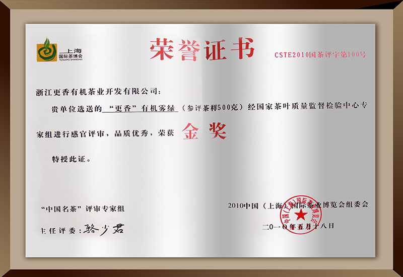 公司先后获评“农业产业化国家重点龙头企业”、“国家茶叶加工技术研发分中心”、“全国青年文明号”、“中国商业名牌”、“北京市优秀特许品牌”、“有机茶行业冠军品牌”、“中国茶叶行业百强”、“农业产业化行业十强企业”、“中国优质产品”;公司先后通过“ISO22000食品安全”、“GAP良好农业规范”、“ISO9001质量管理”、“ISO14001环境管理”、“OHSAS18001职业健康”等管理体系认证;更香有机茶通过“欧盟EC、美国NOP和杭州中农”三重有机茶认证、武义县首届“政府质量奖”、“国家有机食品生产基地”等荣誉称号。宁红工夫、宁红金毫系列产品多次荣获国际、国家及省部级金奖、银奖。